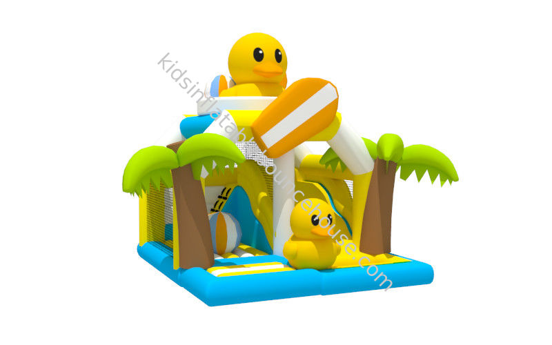 Nuovo e rinfrescante castello gonfiabile estivo a tema animali con scivolo e trampolino a forma di anatra gialla