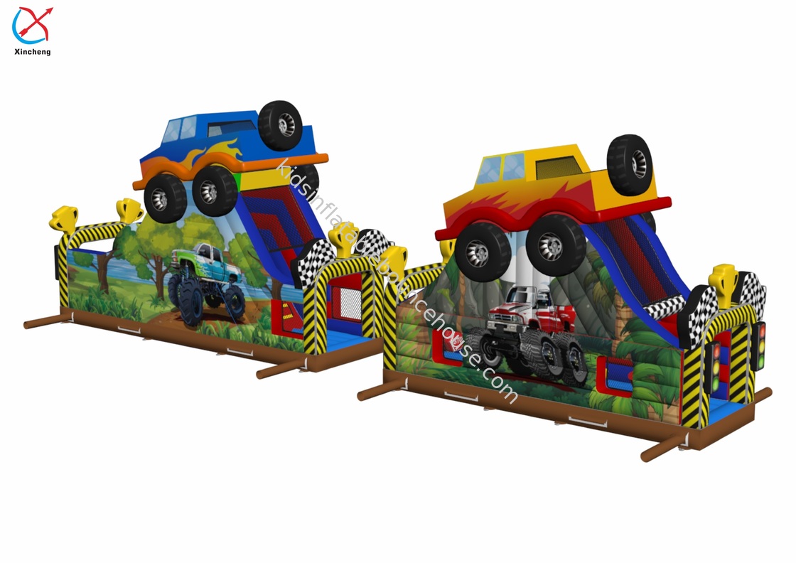 Corso di ostacoli di fabbrica Casa di rimbalzo Corsa auto gonfiabile Corso di ostacoli con scivolo