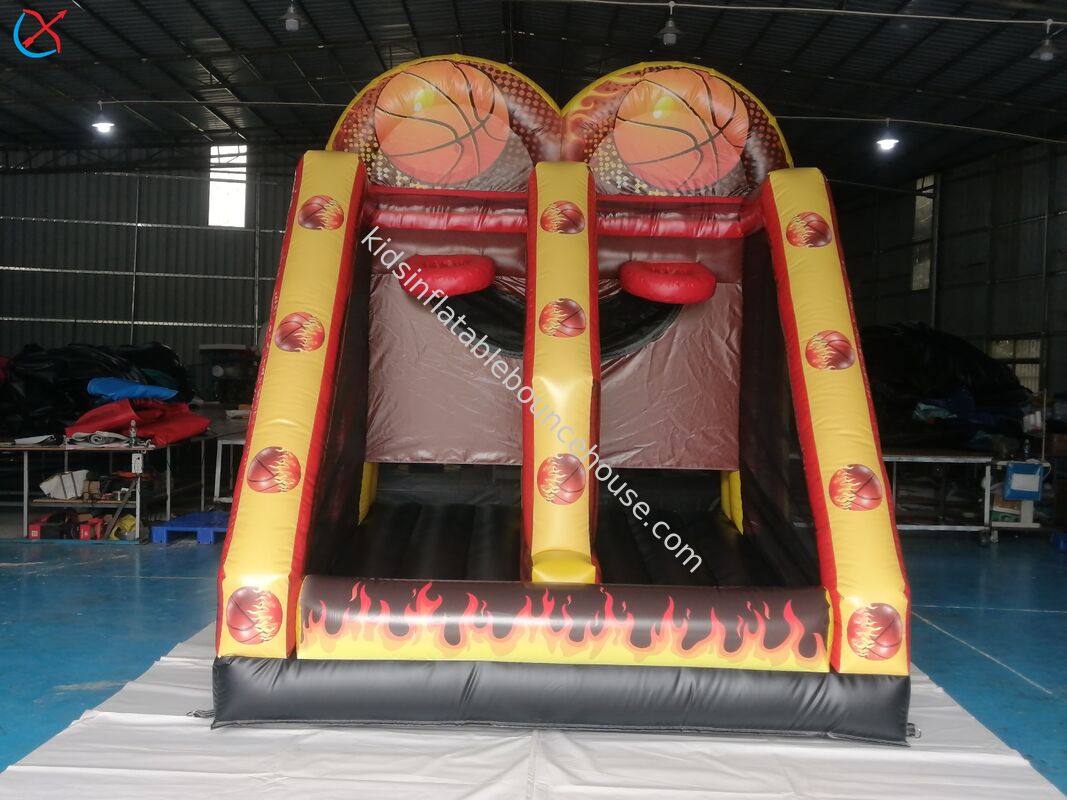 Il gioco di basket gonfiabile commerciale Criss Cross Toss Double Shots è un gioco sportivo gonfiabile di livello professionale progettato per uso commerciale.