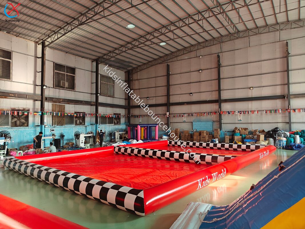 Piscina a bolle gonfiabile rossa progettata per uso commerciale all'aperto, con costruzione durevole e design vibrante.
