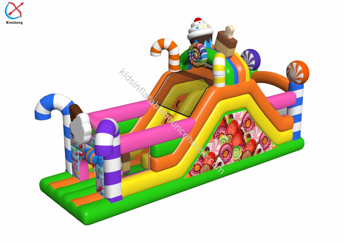 Corso d'ostacolo di fabbrica castello caramelle Corso d'ostacolo gonfiabile con scivolo
