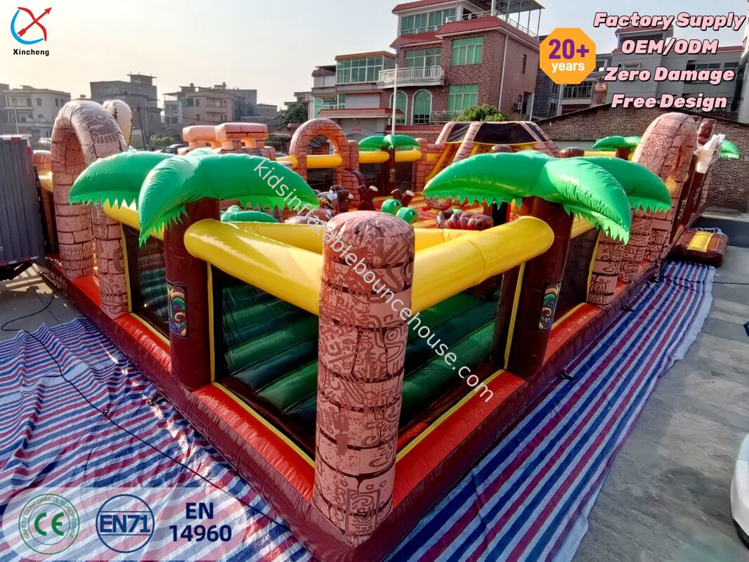 Casa Gonfiabile Scivolo Divertimento Città PVC Palma Foresta Tropicale Grande